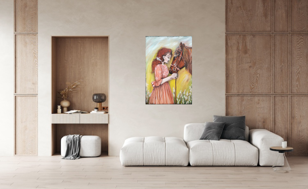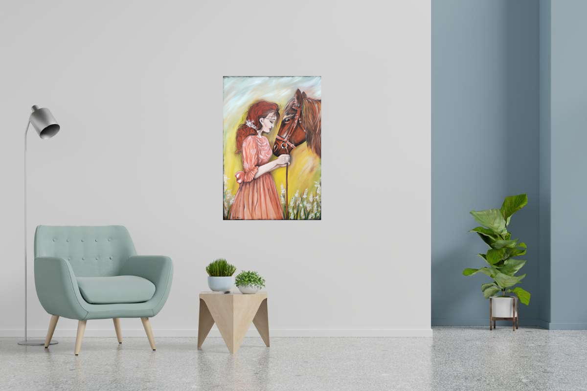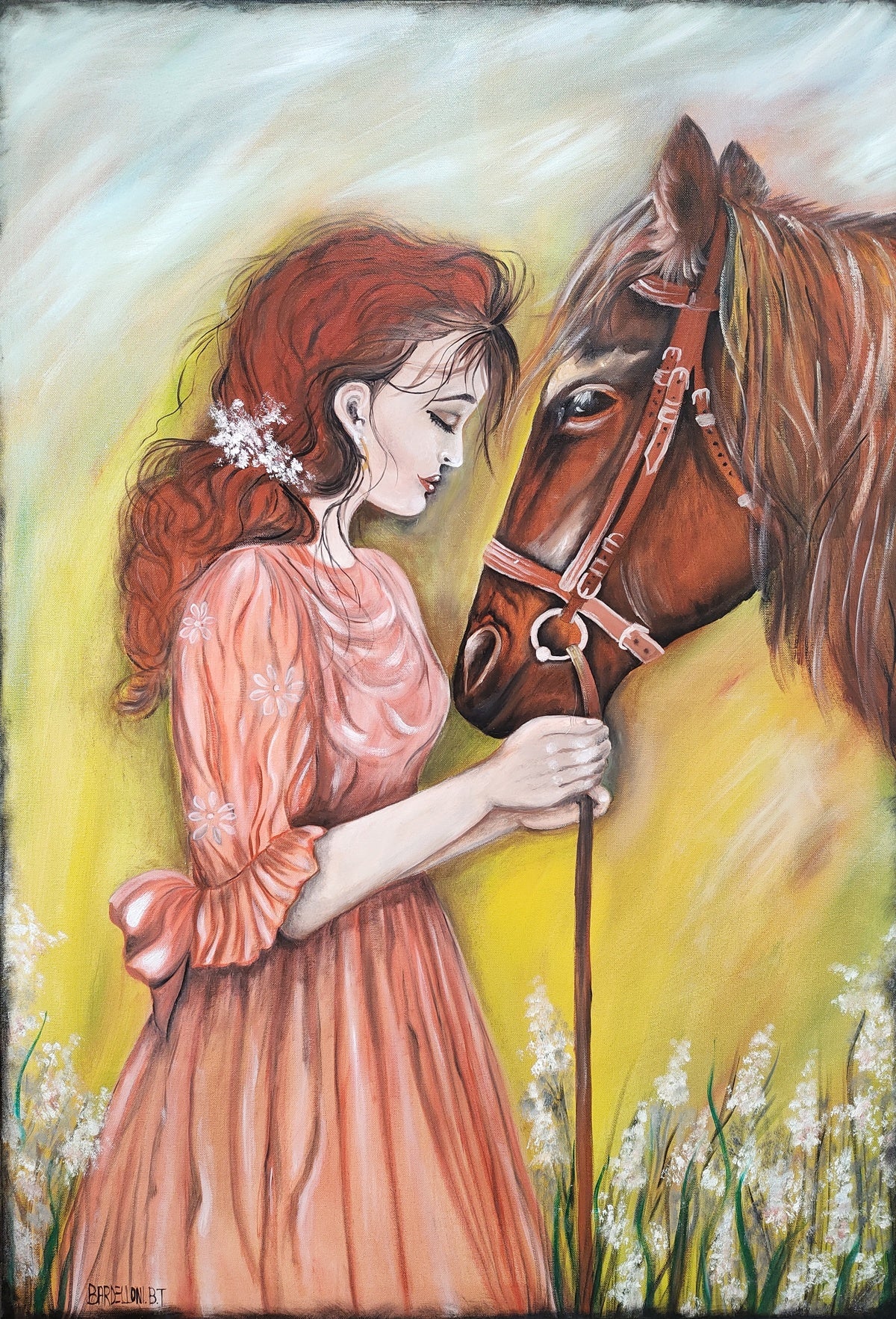 Esplora l'intensa relazione tra un cavallo e una ragazza con LE CHEVAL. Dipinto con olio su tela, cattura l'emozione unica di questo legame. Senza cornice, questo dipinto risalta l'intensità dell'amore e della fiducia tra questi due esseri.