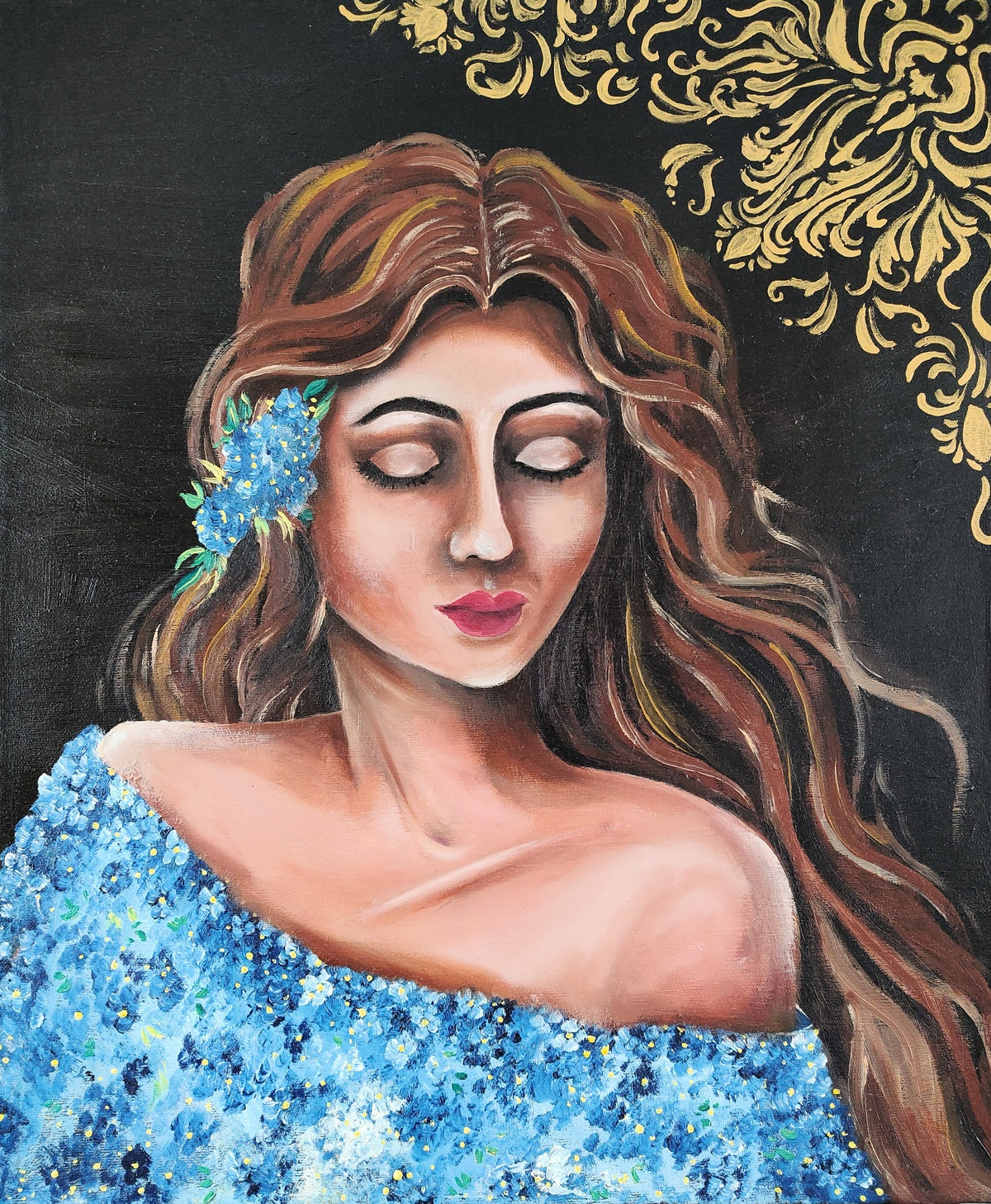 Si intrecciano cromatismi intensi, in un profondo gioco psicologico che lascia al fruitore la stessa malinconia della figura rappresentata.