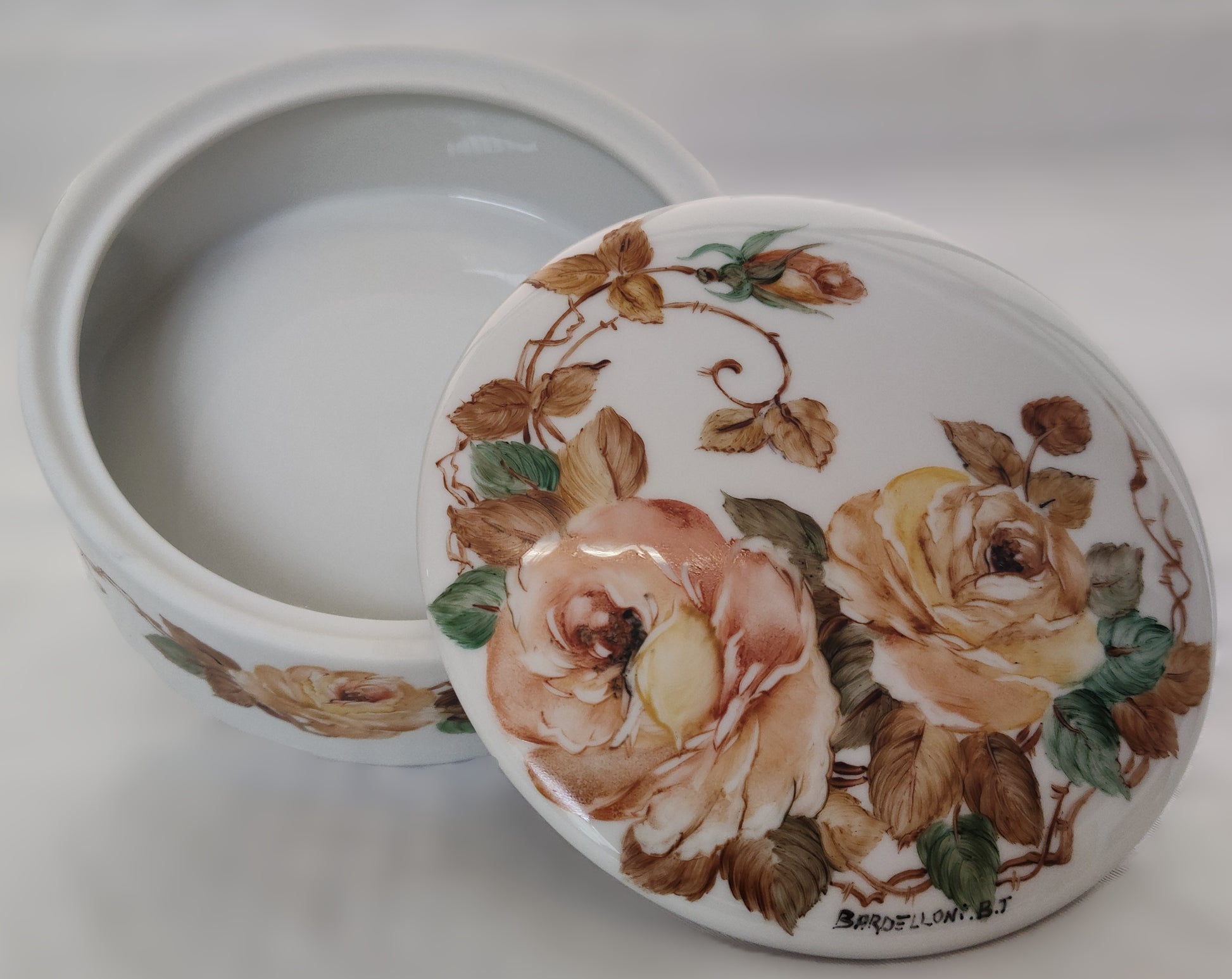 Questo elegante portagioie rotondo è il modo perfetto per conservare i tuoi gioielli preziosi come anelli, orecchini e collane. Realizzato con un design unico e decorato con rose, questo portagioie aggiungerà un tocco di bellezza e lusso alla tua collezione di gioielli.